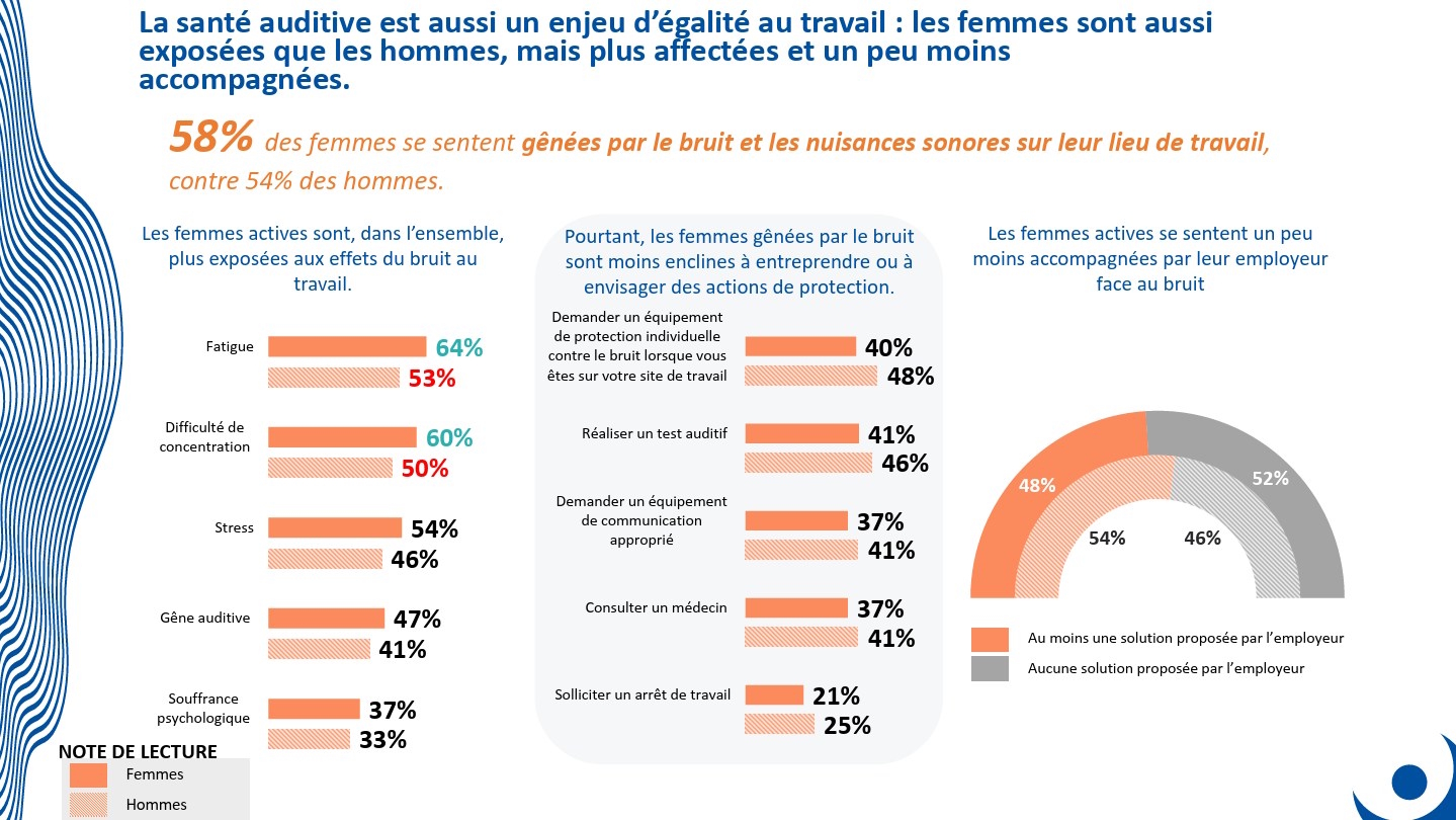 La 9ème vague du baromètre Ifop-ANA met en lumière les publics les plus exposés aux nuisances sonores en milieu professionnel, souvent négligés par les politiques de prévention : les femmes, les personnes malentendantes et les travailleurs précaires… Mais d’autres profils spécifiques méritent également qu’on s’y arrête, a souligné l’ANA, comme les jeunes ou les salariés des administrations.