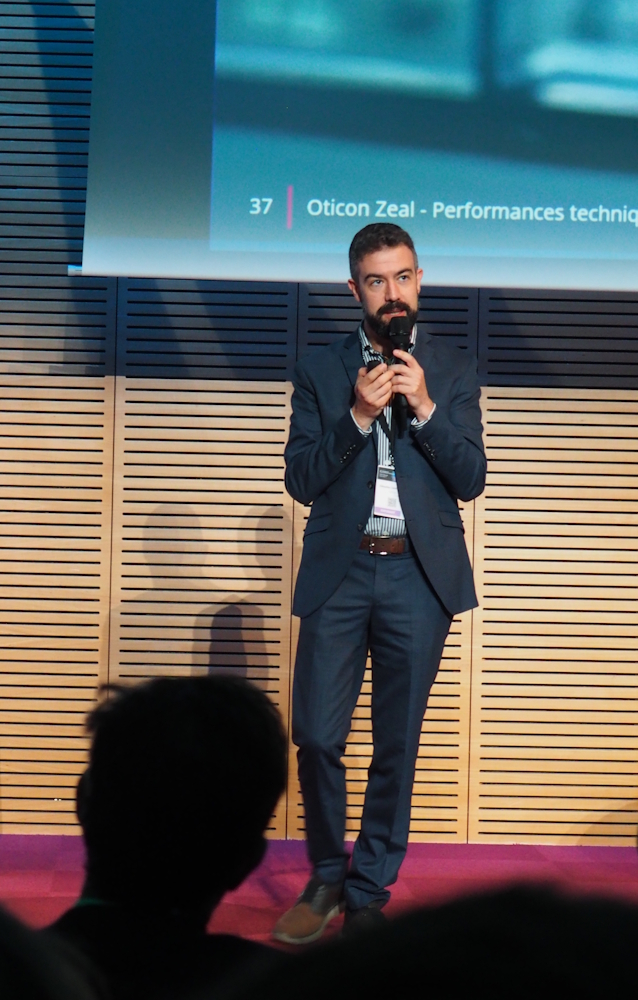 Sébastien Santurette, directeur de recherche au siège mondial de l’entreprise au Danemark, a ensuite présenté les dernières études publiées par Oticon sur les performances de Zeal. Elles ont été explorées sous 5 angles : par comparaison aux aides auditives haut de gamme d’Oticon, sur la clarté de la parole dans le bruit, sur la gestion des sons soudains, concernant la préférence subjective des patients et leurs retours globaux. Malgré sa petite taille, la nouvelle aide auditive montre des performances équivalentes aux autres produits premium de la marque, notamment dans l’accès donné aux indices de parole. Elle surpasse également les appareils concurrents dans le traitement des sons soudains, a indiqué Sébastien Santurette. Pour toutes ces raisons, ainsi que pour sa connectivité, les retours des patients et leurs choix préférentiels sont en faveur de Zeal. Les études menées par le fabricant font l’objet d’un livre blanc dédié, consultable en amont de la sortie du produit en France, le mois prochain.