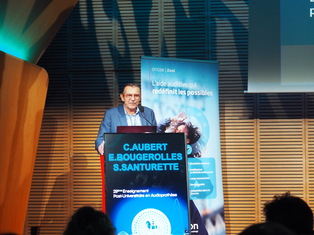 Eric Bougerolles, directeur de l’audiologie en France, a rappelé combien le stigmate attaché à la perte auditive est un frein à l’appareillage. C’est pour lever cet obstacle, qu’Oticon a conçu une nouvelle catégorie d’appareils, In Ear NXT, pour réunir : discrétion, performances (grâce au réseau neuronal profond de deuxième génération), connectivité, rechargeabilité et adaptation immédiate. Dessiné à partir de l’étude de 1 500 oreilles différentes et fabriqué par encapsulation des composants dans une résine époxy, Zeal veut allier la miniaturisation avec les toutes dernières technologies : une IA qui fonctionne en continu, les normes de connectivité les plus récentes (Auracast, Fast Pair avec les smartphones Android, et compatibilité avec tous les accessoires Oticon) et une autonomie jusqu’à 20 heures, équivalente à celle d’Oticon Intent. « Vous pouvez faire la check list de tout ce que vous voulez dans une aide auditive, elle l’a », a plaisanté Eric Bougerolles.