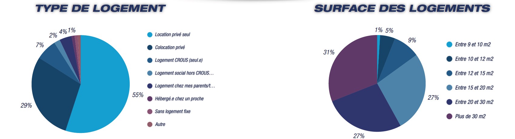 A cela s’ajoute la problématique des stages obligatoires, qui ne se déroulent pas forcément dans la même zone géographique que celle de l’école. Résultat : 40,6 % des étudiant·es sont obligé·es de payer 2 loyers durant ces périodes et 16,6 % ont connu un changement de logement en cours d’année en raison d’un stage.